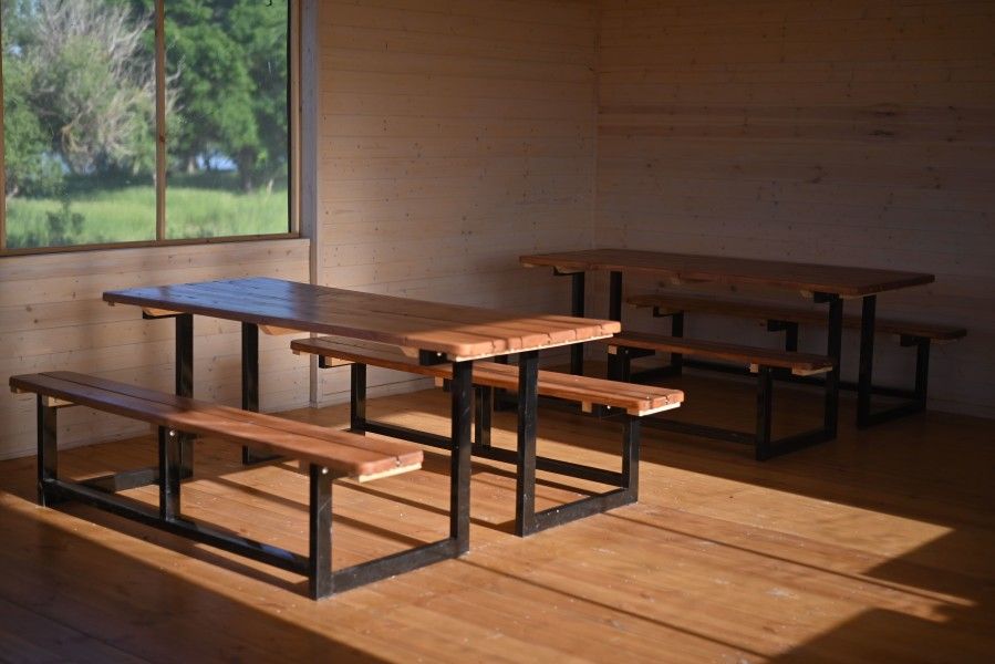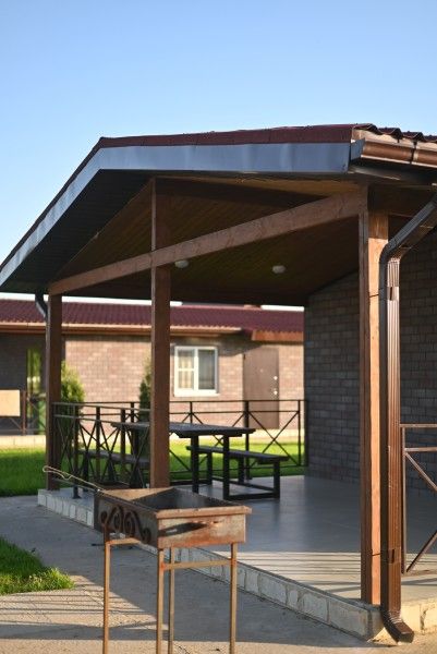 На берегу реки расположена уютная беседка — идеальное место для встреч и праздников в кругу друзей. Рядом находится мангальная зона, где можно наслаждаться вкусными блюдами на открытом воздухе.