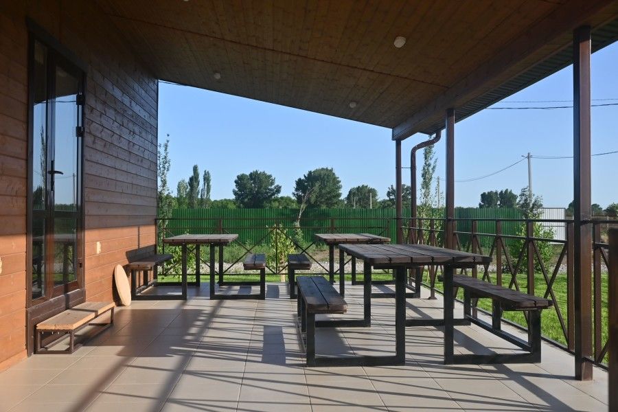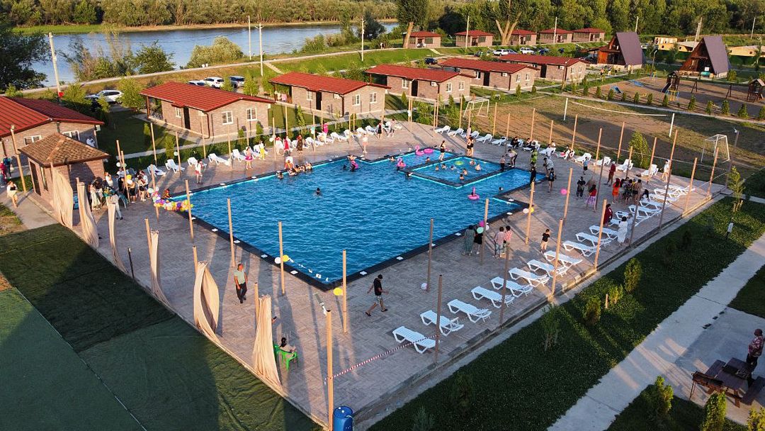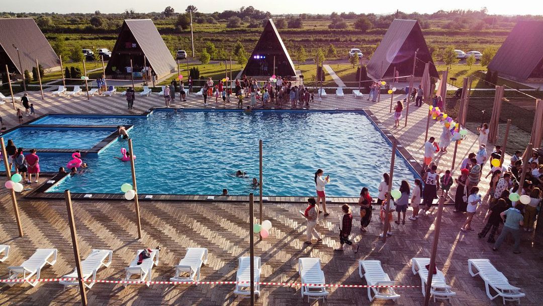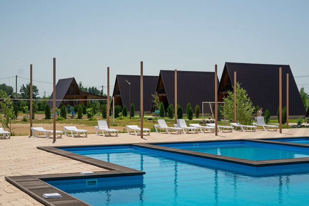Территория базы украшена живописным открытым бассейном, окруженным шезлонгами, где можно освежиться в жаркий день. Вдоль реки раскинулись уютные беседки, защищающие от солнечных лучей и создающие идеальные условия для наслаждения отдыхом. Для ценителей кулинарных изысков предусмотрены мангальные зоны, где можно приготовить аппетитные блюда под звуки окружающей природы.