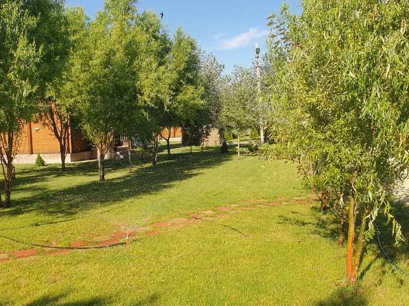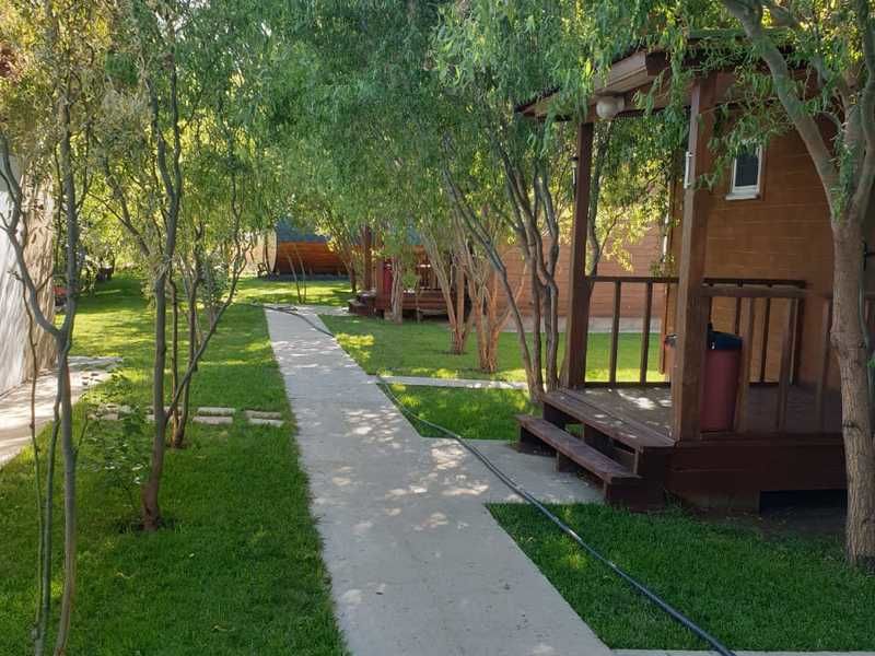Плавательный бассейн с фильтрацией установлен на ухоженной территории турбазы.