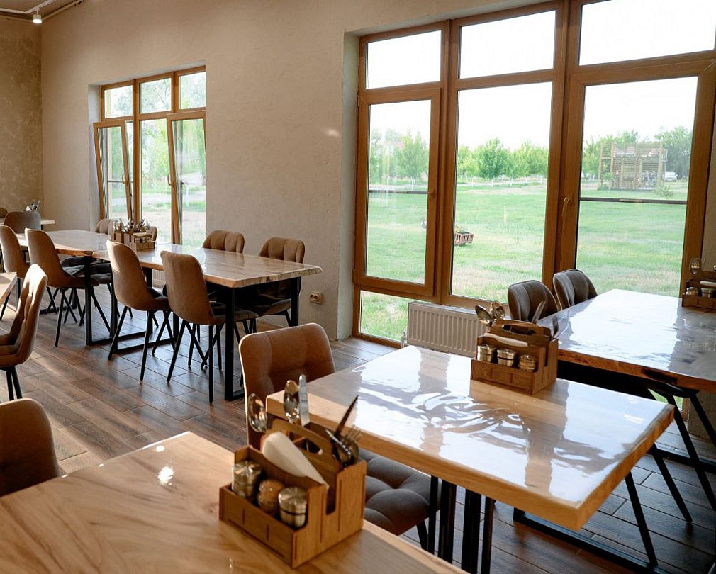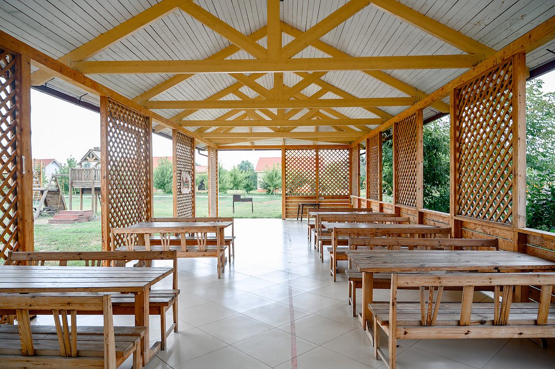 Уютные домики оборудованы всем необходимым: мебелью, телевизором, кондиционером, просторным санузлом с душем и кухней. Для любителей шашлыков — мангалы у каждого дома.