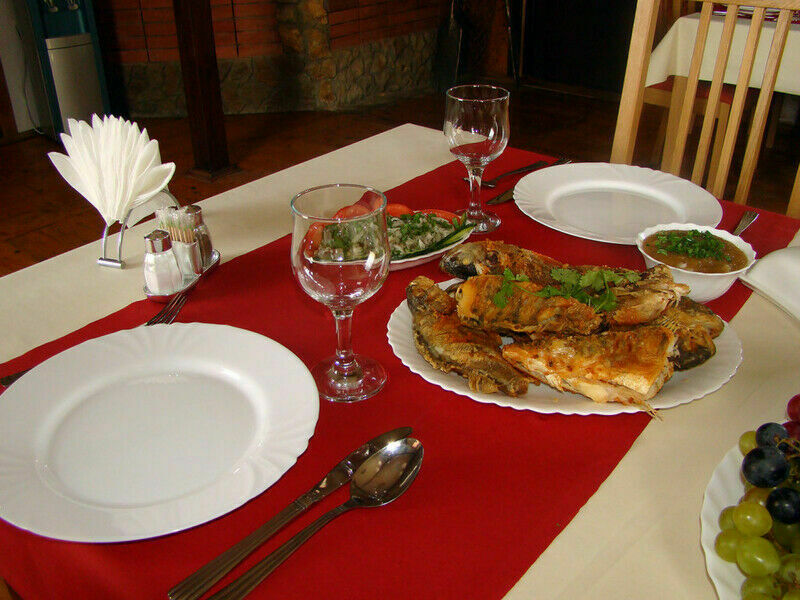 - на самой базе нас встретил персонал с угощениями (это даже было лишним), но очень было приятно. Сервис супер, еда супер, проживание супер - есть все интернет, горячая вода, тв и тд и тп - даже матрасы ортопедические. Состояние строений и интерьера 5+. Территория нереальная - чисто, деревья, дорожки и все остальное. Еда и подача ресторанская. Есть все. Администратор Михаил общается с гостями отвечает на все вопросы, решает все проблемы, короче молодчага.