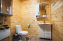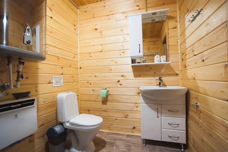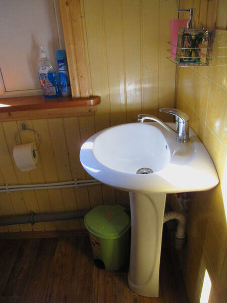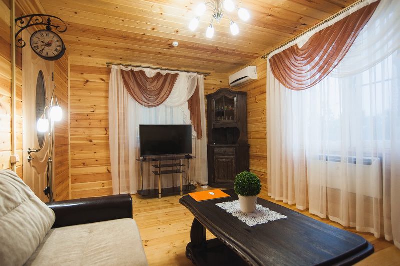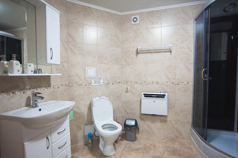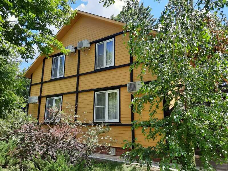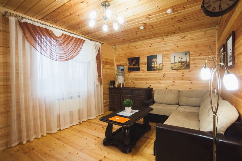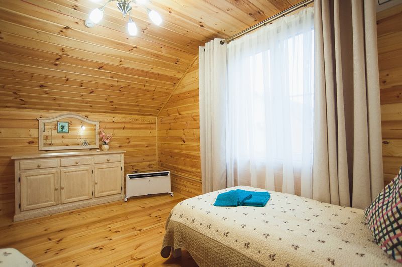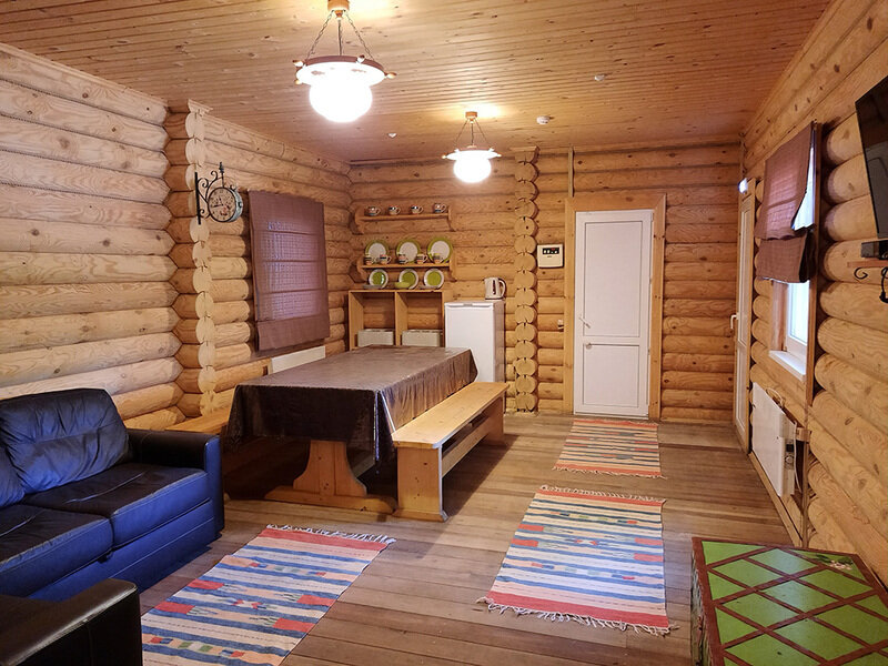 Трехэтажный коттедж. 1 этаж : столовая, бильярд, сауна, душевая, санузел и технические помещения. Проживание на 2 этаже - два 3-х местных номера, общая гостиная с ТВ и чайным столом, 2 санузла, маленький холодильник в каждом номере.