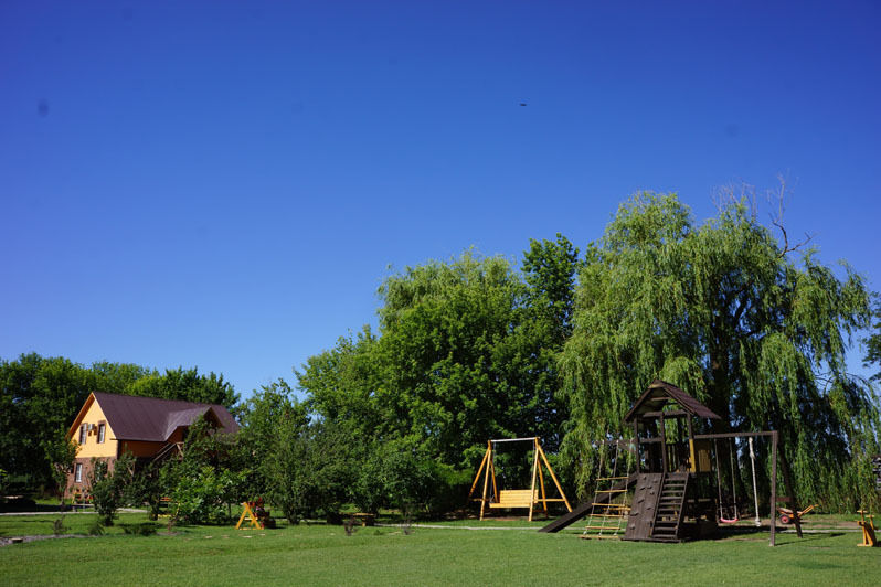 Здесь большая зеленая территория с зонами для игр, отдыха и проживания. Гостям предлагают вкусное трехразовое питание в кафе, для тех кто предпочитает готовить самостоятельно оборудованы специальные кухни в коттеджах, со всей необходимой техникой и столовыми приборами. Для развлечения гостей проводится организация рыбной ловли, как для опытных рыбаков, так и для новичков. В аренду можно взять лодку и воспользоваться услугами профессиональных егерей. В магазине базы продаются рыболовные снасти. Выловленный улов помогут обработать специалисты.