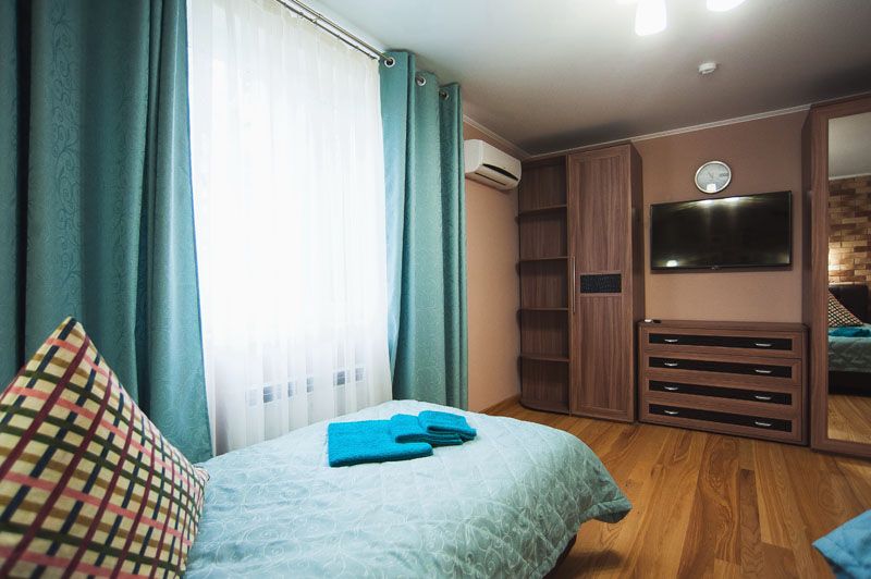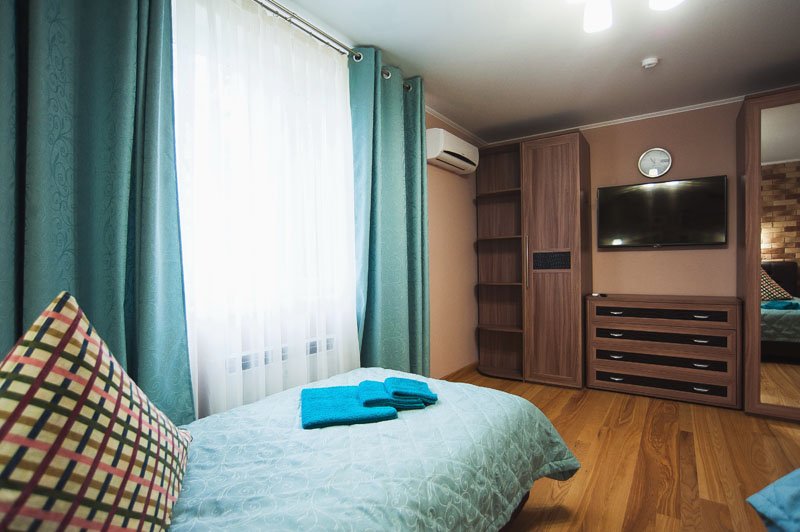 В каждом - гостиная+спальня, свой с\у, ТВ, чайный уголок.