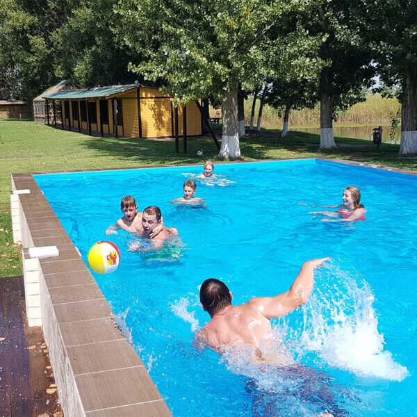 Территория, инфраструктура и удобстваБольшой открытый бассейн      Большой открытый бассейнОписаниеТип бассейна: открытый бассейнРядом с бассейном: шезлонги, зонтикиРазмеры: 6 x 12 мПлощадь: 72 м²Глубина: 160 смДетский открытый бассейнДля маленьких гостей оборудован отдельный детский бассейн, рядом с бассейнами для взрослых.   Детский открытый бассейнОписаниеТип бассейна: открытый бассейн, детский бассейнРядом с бассейном: шезлонги, зонтикиГлубина: 75 смДля маленьких гостей оборудован отдельный детский бассейн, рядом с бассейнами для взрослых.