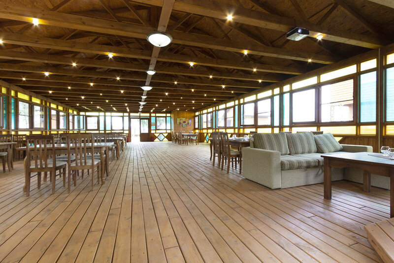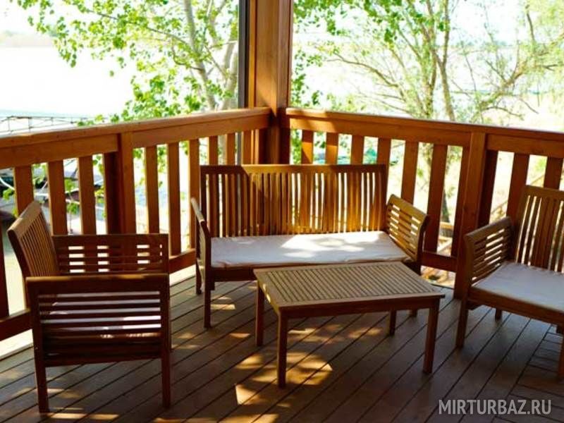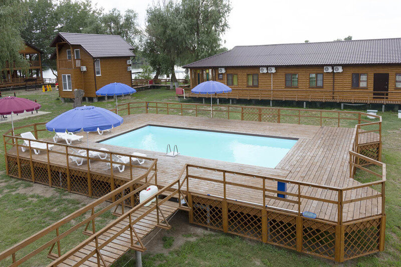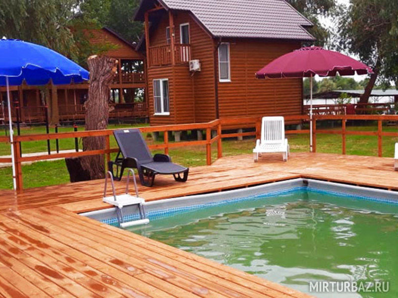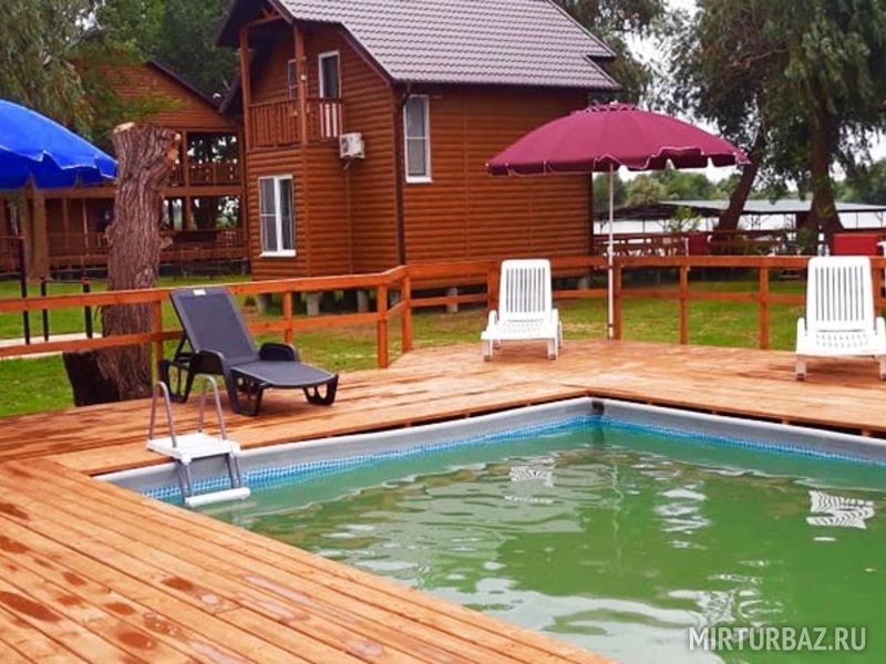 На территории базы установлен бассейн с чистой, обработанной специальным реактивом (Н2О2) водой, рассчитанный на большую компанию.