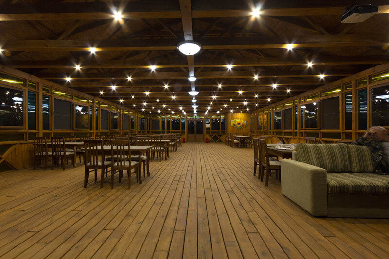 На территории турбазы имеется кафе, где предоставляется комплексное питание, гости смогут отведать астраханскую кухню, а также по заказу повара смогут приготовить разнообразные блюда из собственного улова.