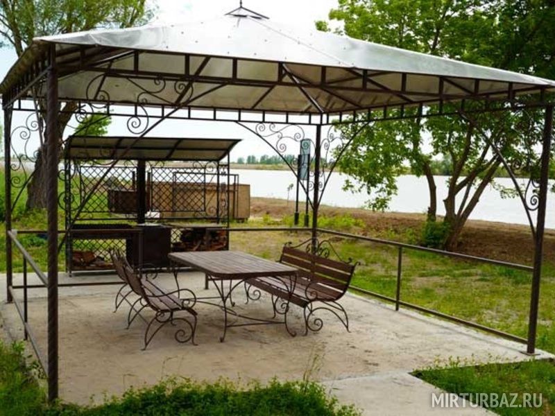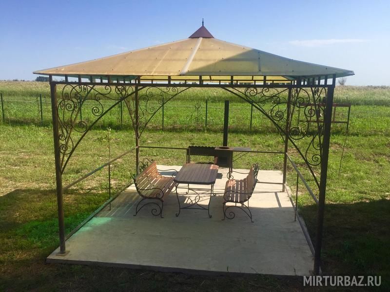 Беседка с мангалом есть около каждого домика, а так же есть одна большая беседка для гостей арендующих номера.