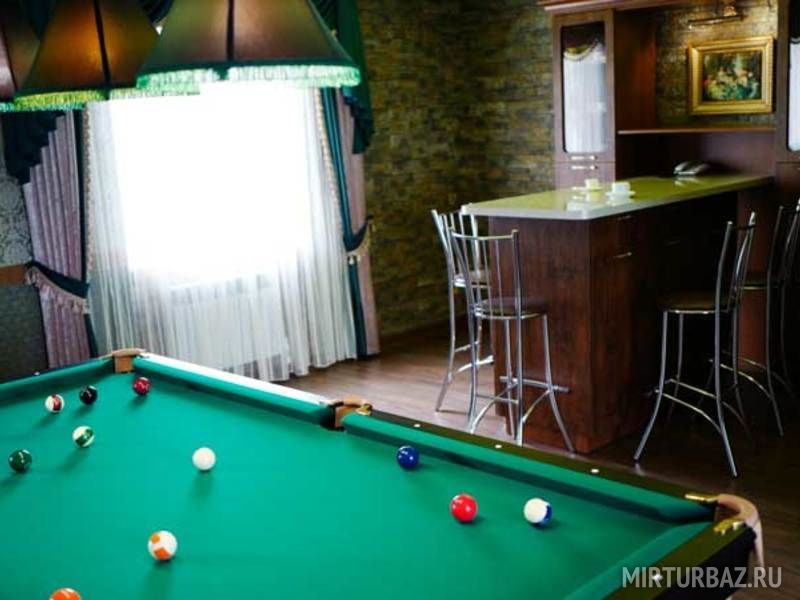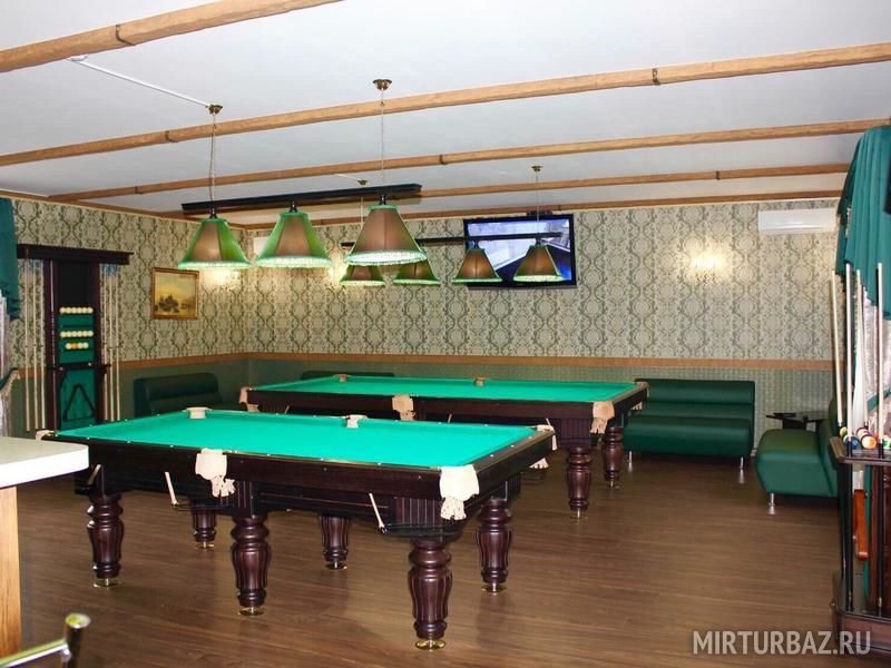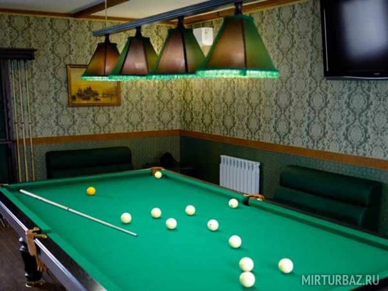 Развлечься с друзьями Вы так же сможете в бильярдном зале. Имеется стол для русского бильярда и стол для американского пула.