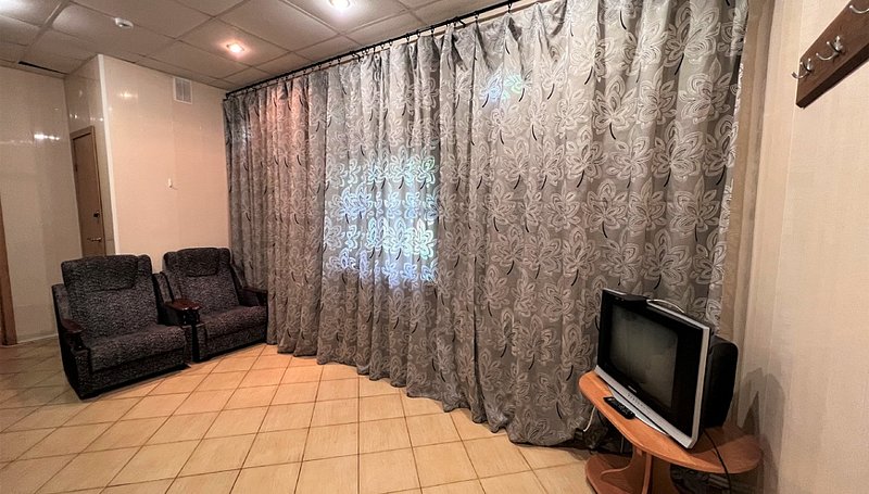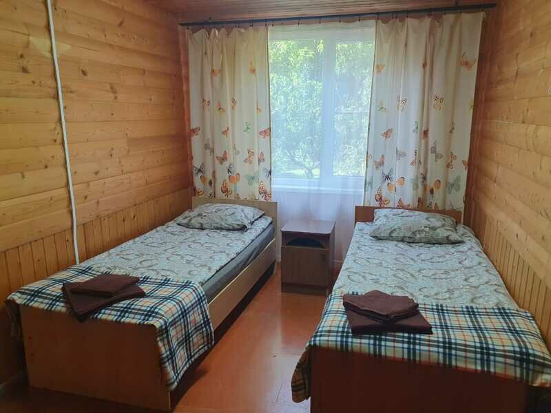 2-й этаж – двухместные номера (гостиная разделена аркой от спальной комнаты (есть 2 номера с двуспальной кроватью, остальные номера с раздельными кроватями), ванная комната, телевизор, холодильник, сплит-система). Теплые номера.