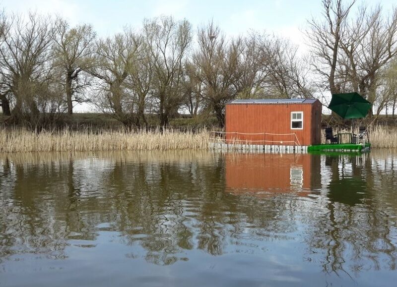 Плавучие домики в данный момент находятся в 35 км. от г.Астрахани в живописных и рыбных местах дельты Волги по адресу Астраханская область, Камызякский район, с.Иванчуг, река "Гандурино".