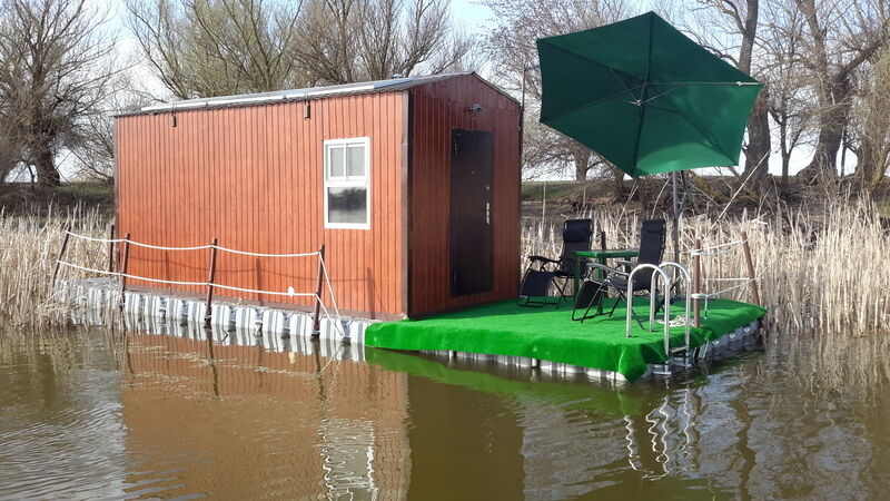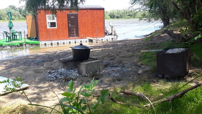 Автономный плавучий домик с пляжем. В домике всё, как в квартире – кухня, туалет, душ, телевидение, интернет, спальные места. Его можно перемещать по воде в любое место. На кухне есть вся необходимая посуда. Холодильник, цифровое телевидение, туалет, душ, отопление.