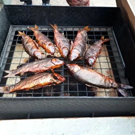 На территории базы находится летнее кафе с оборудованным мангалом, где гости могут удобно расположиться и пожарить мясо или рыбу.