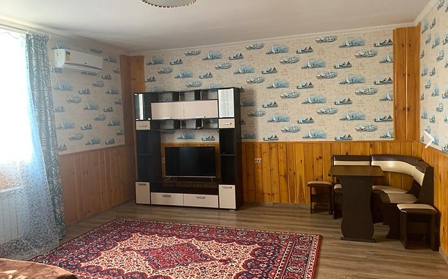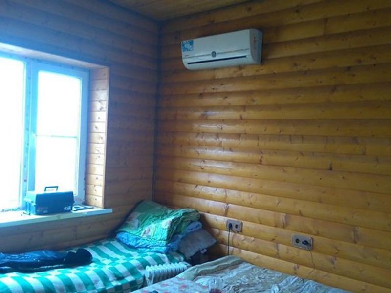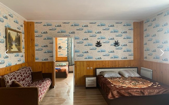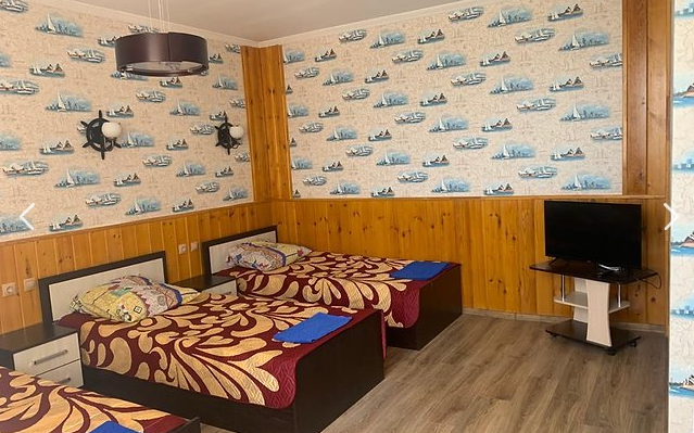 В одной комнате три односпальные кровати, в другой - двуспальная кровать и диван, кондиционер, телевизор.