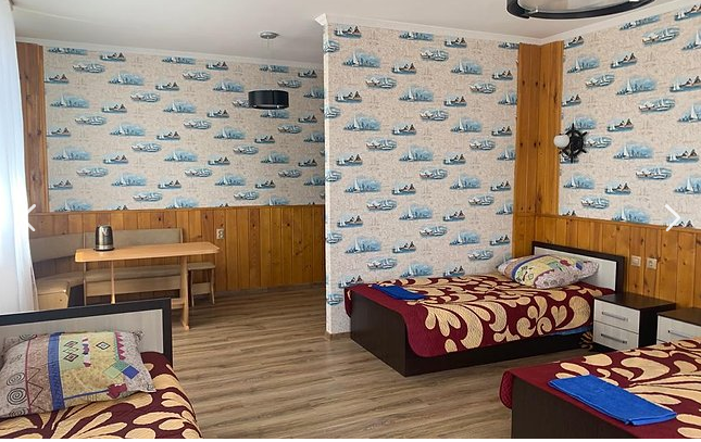 В номере три односпальные кровати, кондиционер, телевизор, холодильник, удобства с душем.