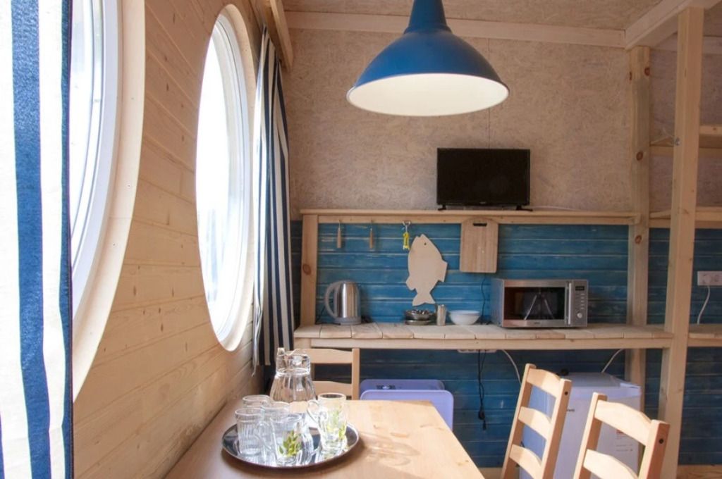 Для большего удобства глэмпы разделены на две зоны: спальную и гостиную.
