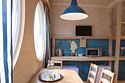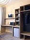 Гостиная зона — это деревянные стол, стулья и умывальник. Гостиная оснащена, мини холодильником, электрическим чайником и микроволновой печкой.