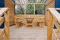 В бане комфортно компании до шести человек. Просторная комната отдыха, парная, душевая и купель призваны лучшим образом проявить ваши ожидания. А на открытой веранде со столом и скамейками можно пировать, как только душе будет угодно.