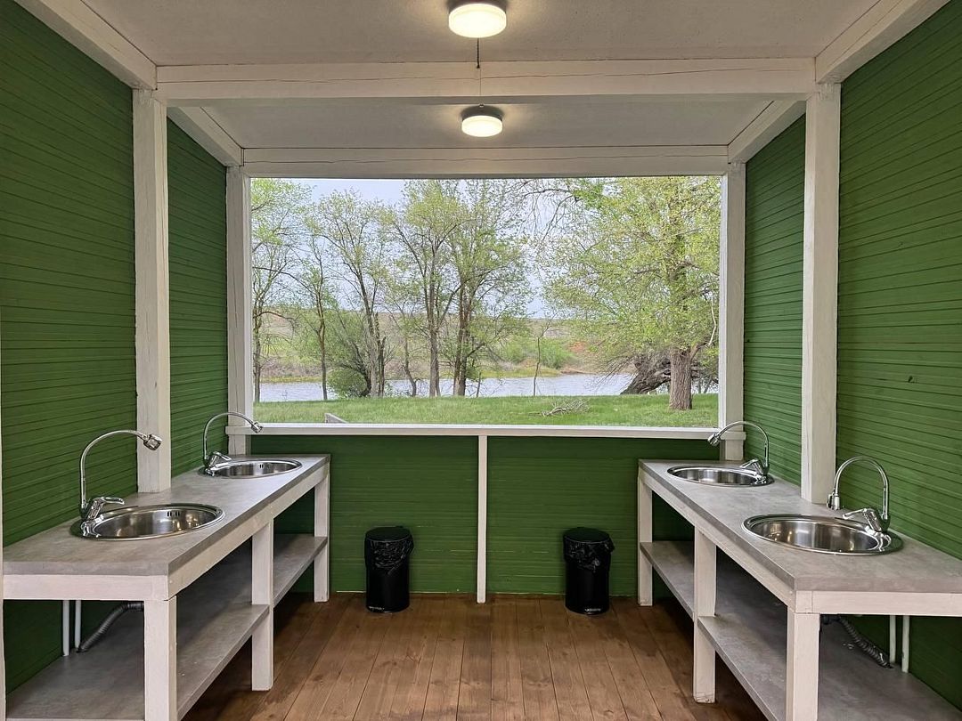 К домикам подведено электричество (есть розетки, освещение), а в тридцати метрах от палаток мы построили новые, комфортные душевые и туалеты.