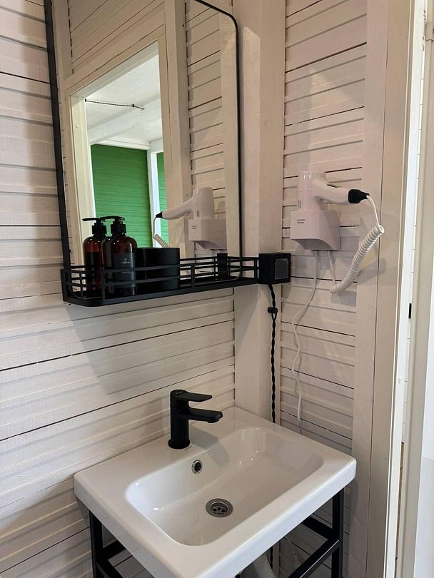 К домикам подведено электричество (есть розетки, освещение), а в тридцати метрах от палаток построены новые, комфортные душевые и туалеты.