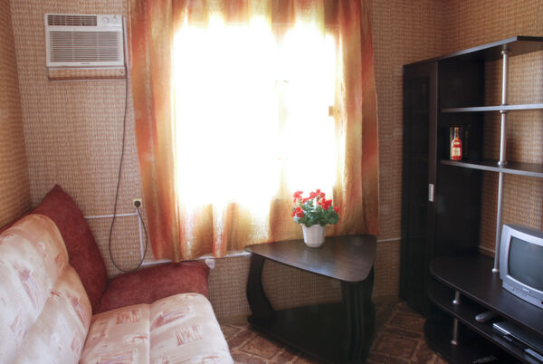 Домики полулюкс рассчитан 2-3х человек + возможность установки 1 (дополнительного) места. Сдаётся целиком. Комнаты с кондиционерами, комната №1 две кровати, столик, раздевальный шкаф, комната №2 мягкий раскладной диван, журнальный столик, стенка с телевизором, DVD, спутниковое ТВ. Туалетная комната с душевой кабиной, горячей и холодной водой, в прихожей стол, тумбочка для посуды, холодильник-морозильник.