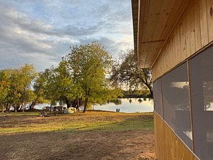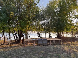 До воды 50 метров. Есть собственный причал, прокат лодок, места для разделки, коптильни, сушки и заморозки трофея.