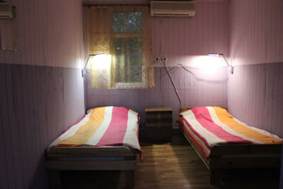 В кафе телевизор и DVD, в каждом номере — кондиционер.