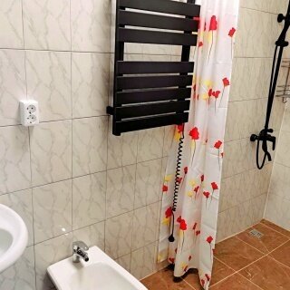 В номере: большие ортопедические матрасы, которые легко трансформируются в двухспальную кровать, телевизор 32", холодильник, кондиционер, электрический чайник, СВЧ печь, ночник. Туалетная комната, в номере (унитаз, биде, душ, раковина, полотенцесушитель.) У каждого номера есть свой стол в банкетном зале.