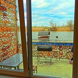 Отдельный пирс с мангалом и рыбочисткой. В доме: большие ортопедические кровати, которые легко трансформируются в двухспальную кровать; санузел (дополнительно установлено бидэ); телевизор; кондиционер; холодильник; печь СВЧ; электрический чайник; газовая плита; подогрев полов; заморозка трофеев (в пределах разумного); одно машиноместо на стоянке; спасательные жилеты; посуда.