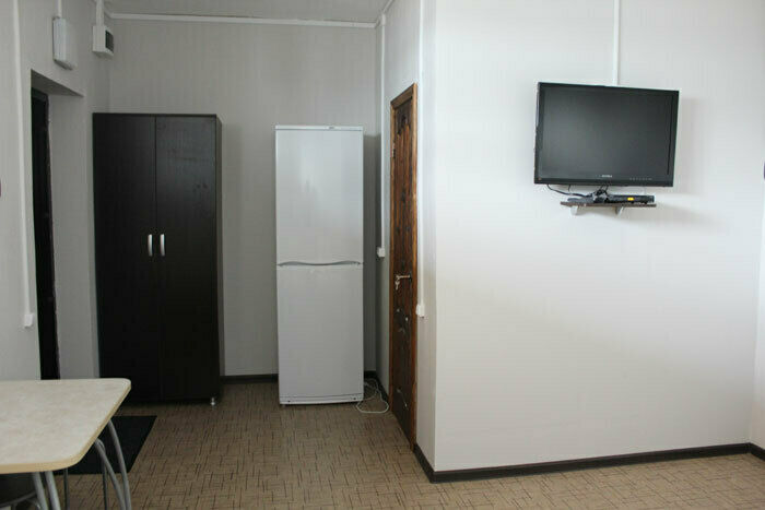 В номере имеются: три полноценных спальных места (две кровати и один диван), спутниковое ТВ, холодильник с 4-х камерной морозилкой, санузел, душ, горячая и холодная вода, кондиционер.