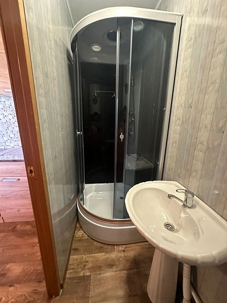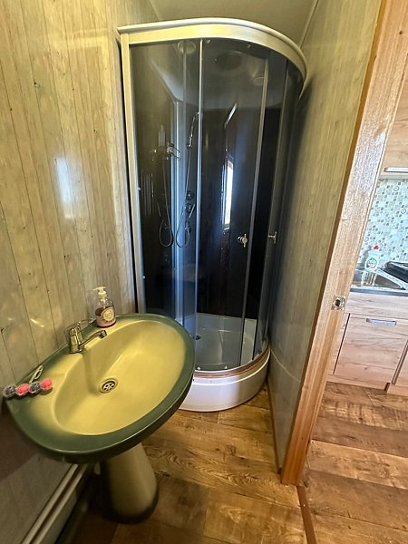 Четырехместный домик с кухней и ванной комнатой.