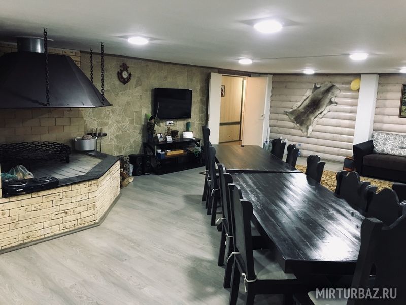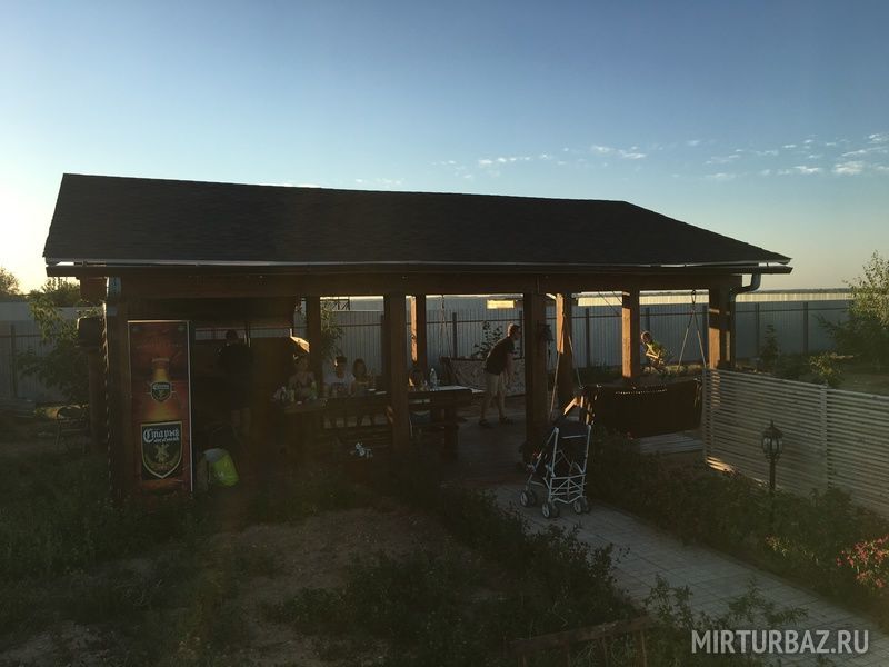 - Беседка из цельных брусов на 20 человек, полностью оборудованная (холодильник, мойка, разделочная поверхность, газовая плита, мангальная, 2 качелями взрослыми и 1 детскими, огромный стол с лавочками и креслокачалкой);
