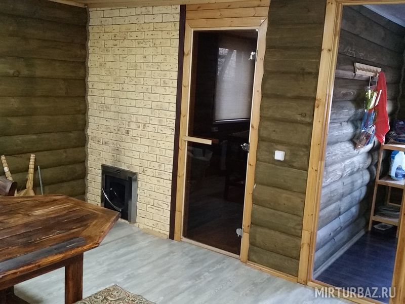В конце дома находится большая русская баня на дровах, с предбанником с телевизором, столом, всеми банными принадлежностями, душем со стиральной машиной и т.д.
