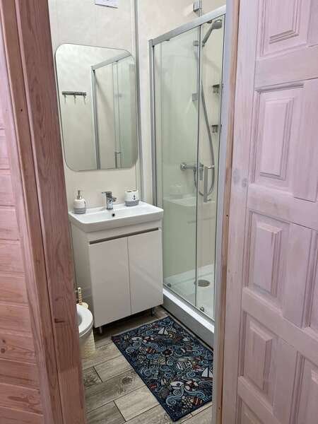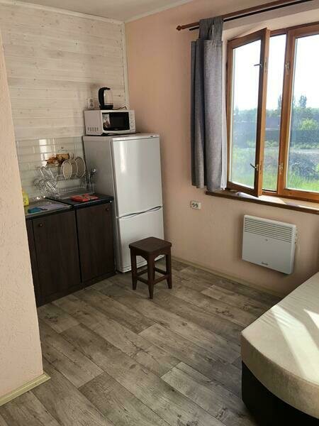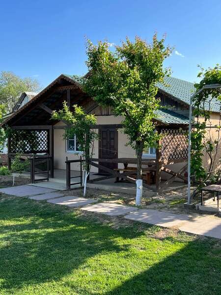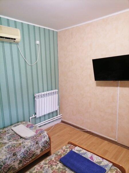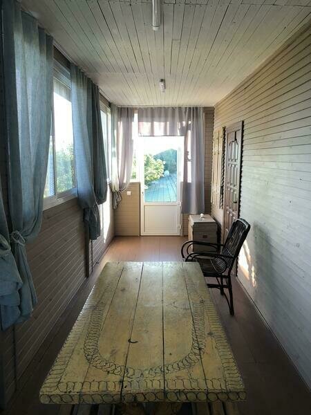 В доме есть все необходимое для комфортного пребывания: Просторный холл, две просторных комнаты, в каждой комнате- туалет, душ, умывальник, индивидуальное отопление, сплит-система, спутниковое телевидение, кухня с газовой плитой, холодильник, зона отдыха, постельное белье. Перед домом расположена летняя веранда в тени плодовых деревьев.