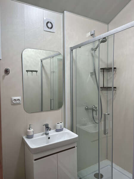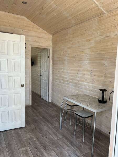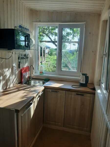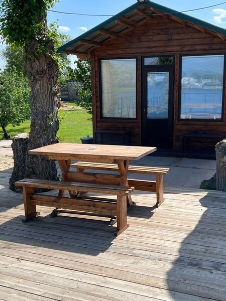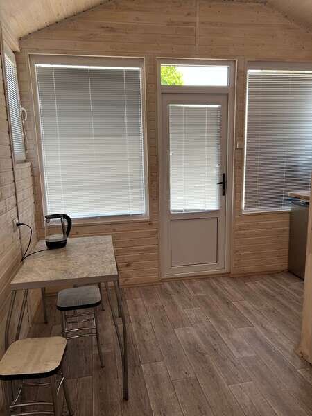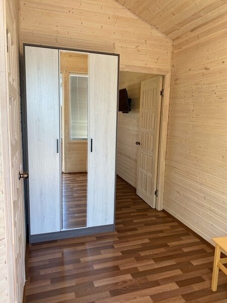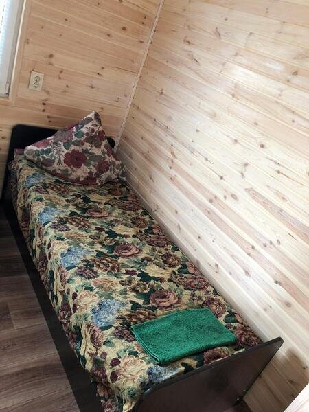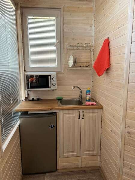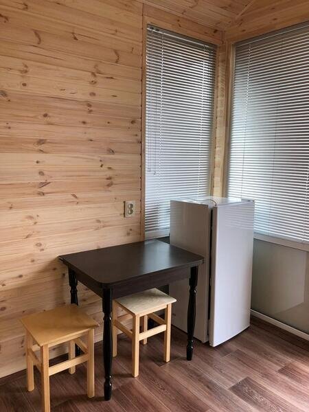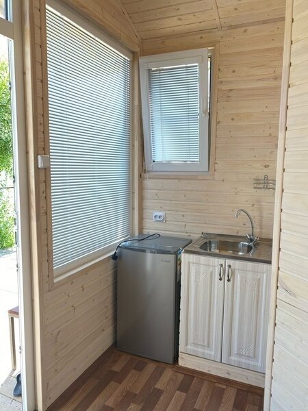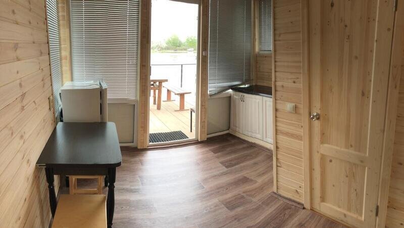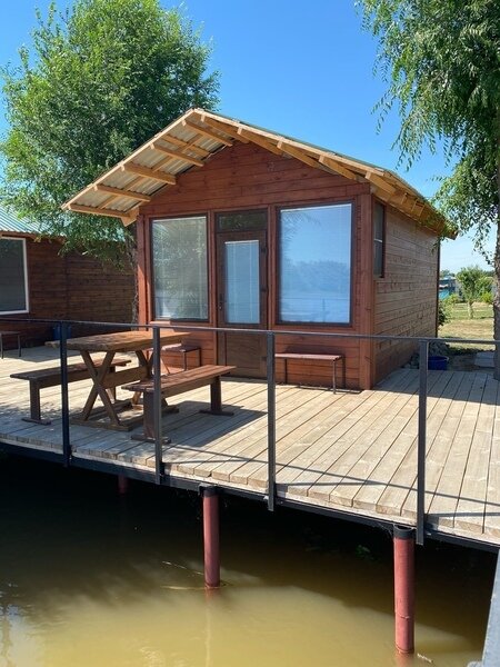 Двухместный домик расположен на непосредственно на берегу реки. Перед домом расположен пирс со столиком и скамейками. В домике есть все для комфортного проживания двух человек. Спальная комната с ТВ. и сплит системой. Кухня с холодильником и микроволновкой. Туалет , душ.