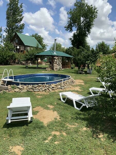 Вы можете купиться -пляж,детский бассейн,большой взрослый бассейн 10 на 4 метра, шезлонги,прогулка по нашему саду, осмотр нашего зоопарка,настольный теннис, бадминтон,дарц.