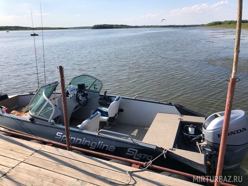 Лодка «Spinningline-470 (SL-470 Fishing)» с 4хтактным двигателем Yamaha 50 л.с., рулевое управление, эхолот, жилеты, весла, якорь. Цена: 5000 ₽ / световой день;