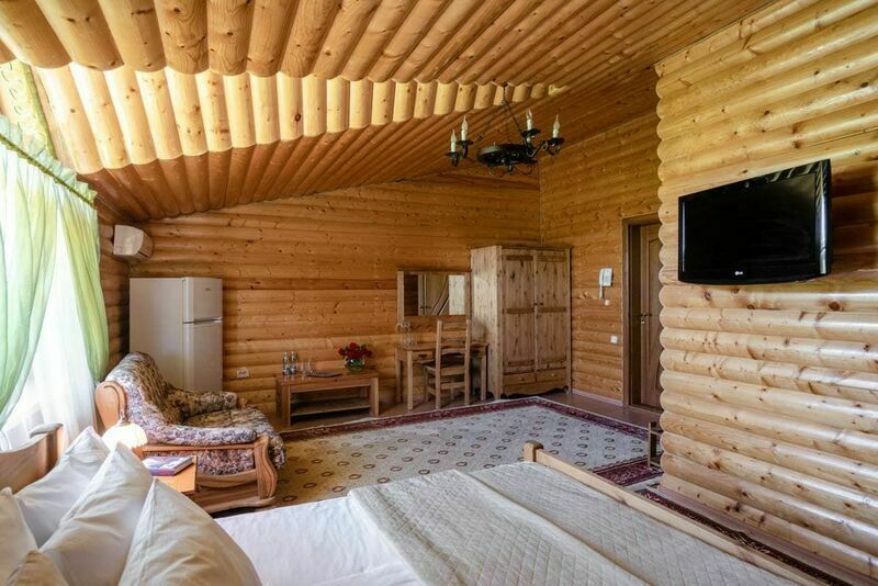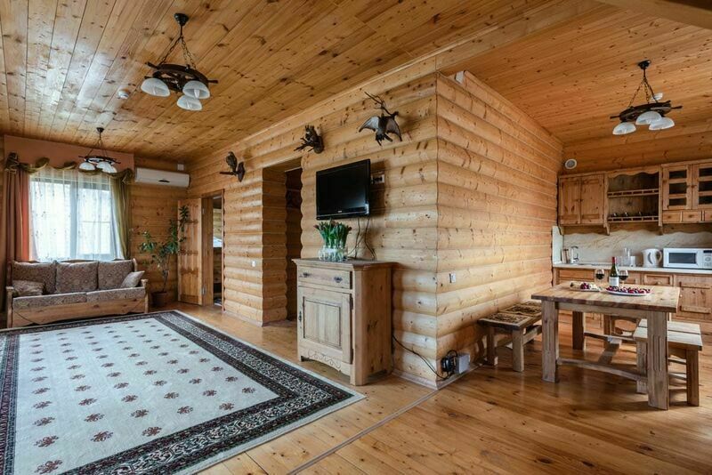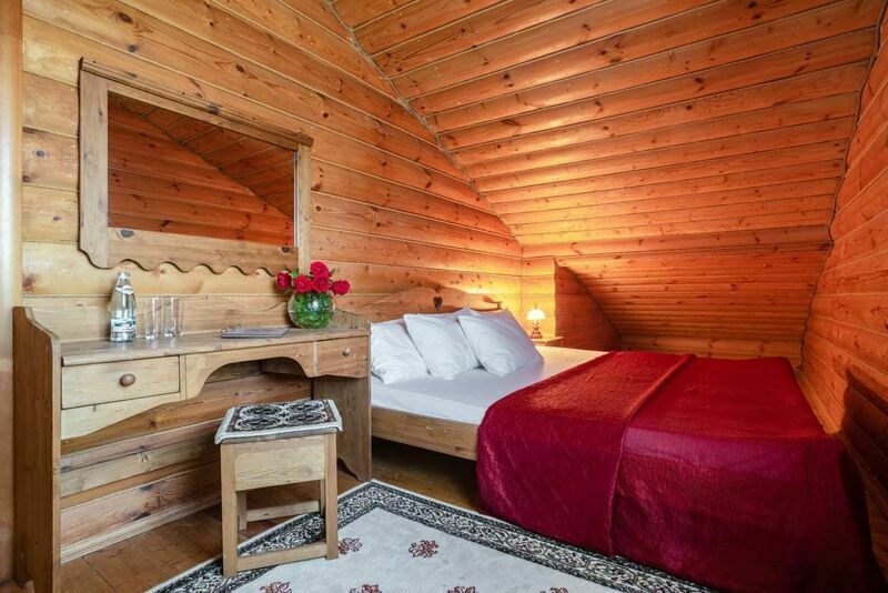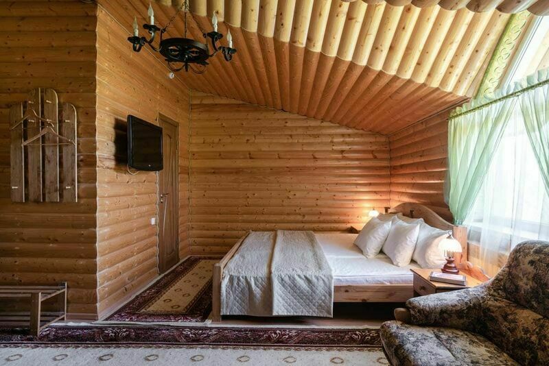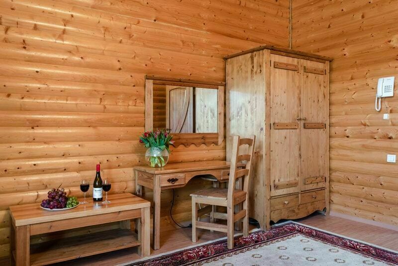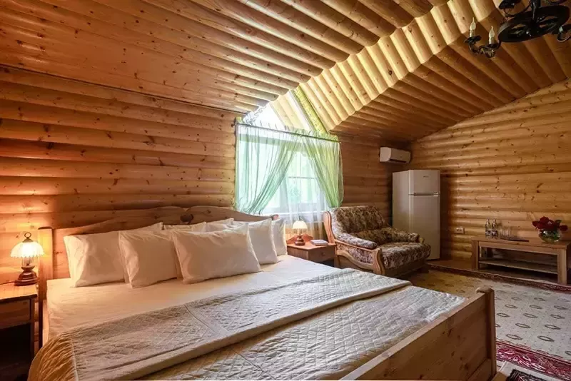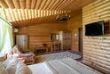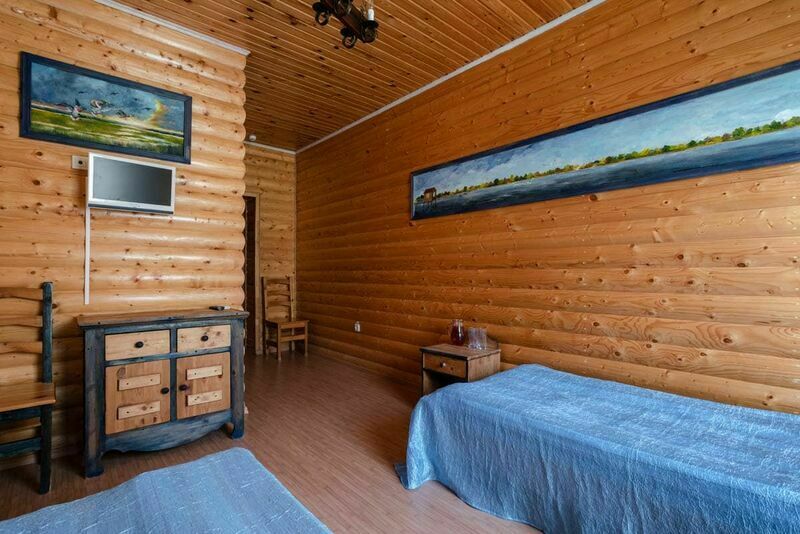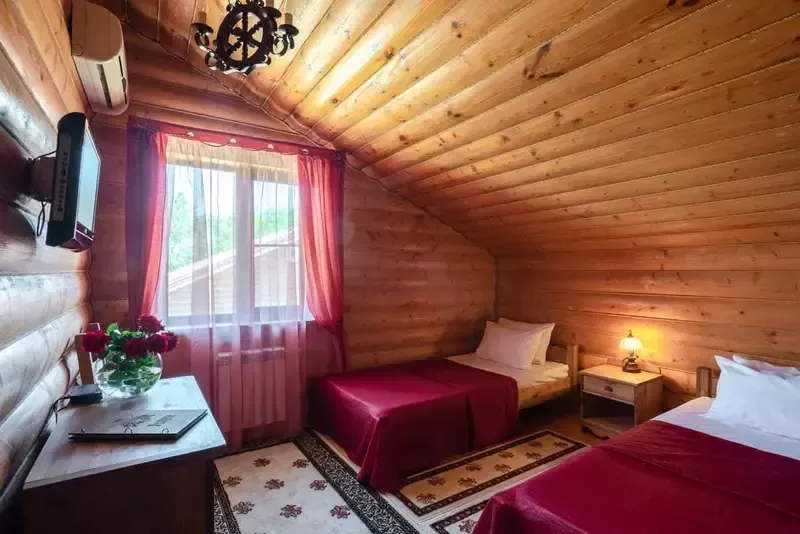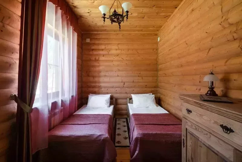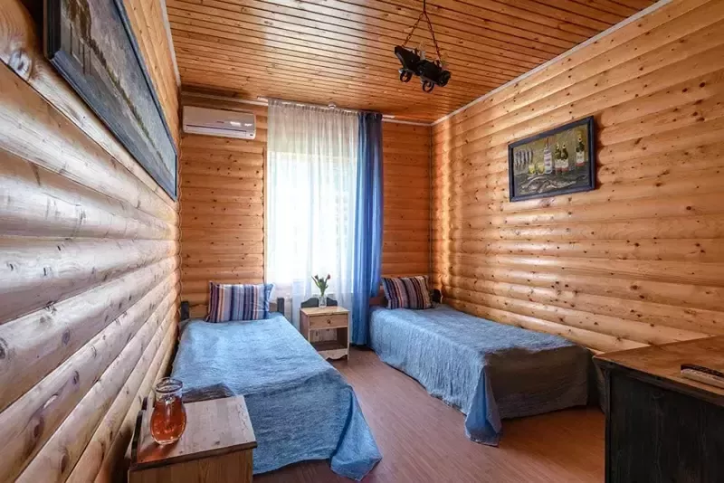 Однокомнатный номер с двумя раздельными кроватями меблирован всем необходимым для комфортного пребывания. Интерьер из соснового сруба создает атмосферу тепла и уюта.