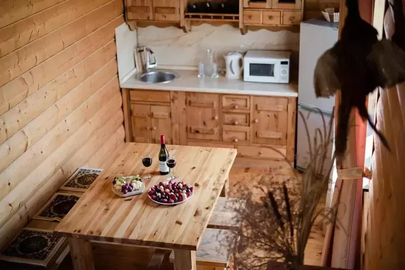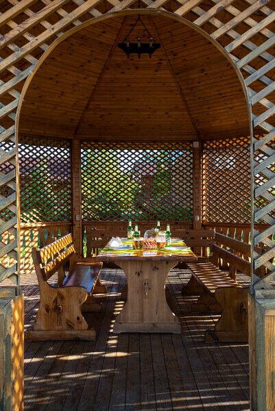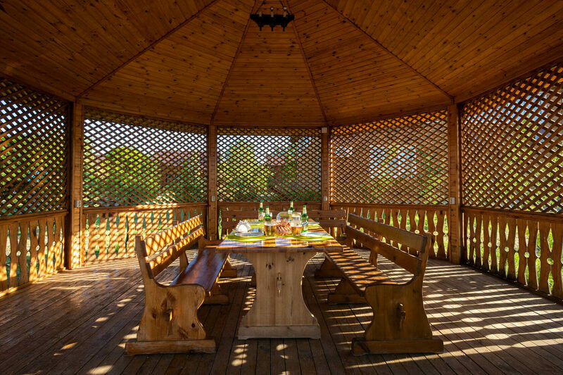 Вряд ли можно найти более подходящее место для отдыха с друзьями, чем беседки. Расположены они на берегу реки, рядом с мангальной зоной, где есть все, чтобы приготовить шашлык, уху или другое блюдо из своих трофеев.