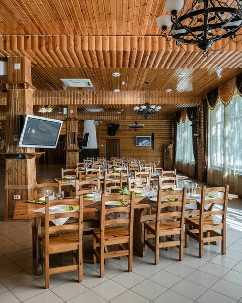 На территории турбазы возможно проведение различных конференций, выездных сессий – конференц – зал вместимостью до 70 человек. Для проведения торжественных мероприятий подойдет ресторан. Вкусная кухня и непринужденная обстановка сделают ваш отдых незабываемым.