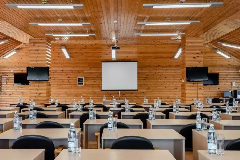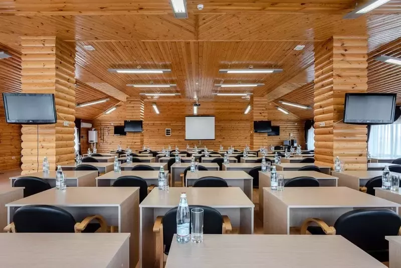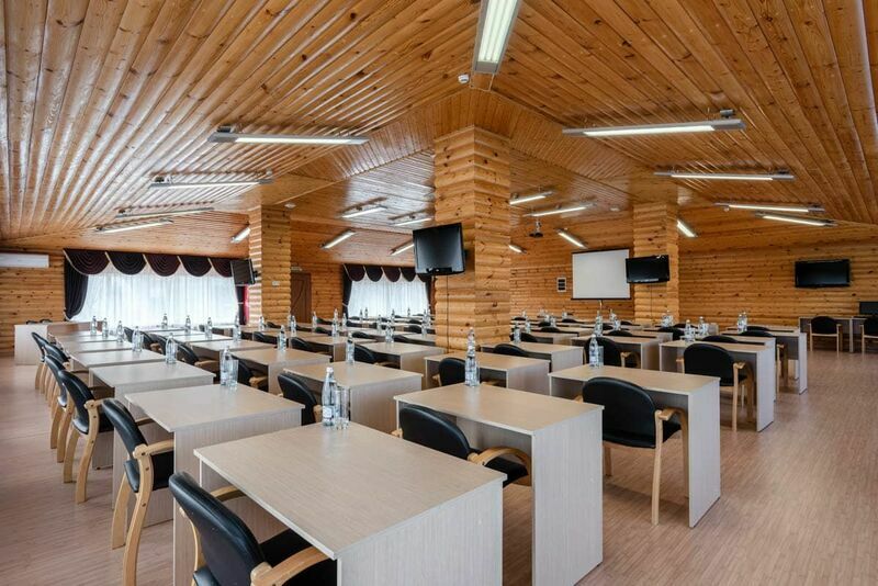 Для проведения корпоративных мероприятий на территории базы имеется конференц-зал на 70 посадочных мест, оборудованный всем необходимым (интернет, проектор, экран, флипчарт).