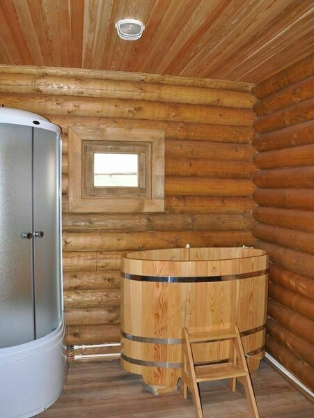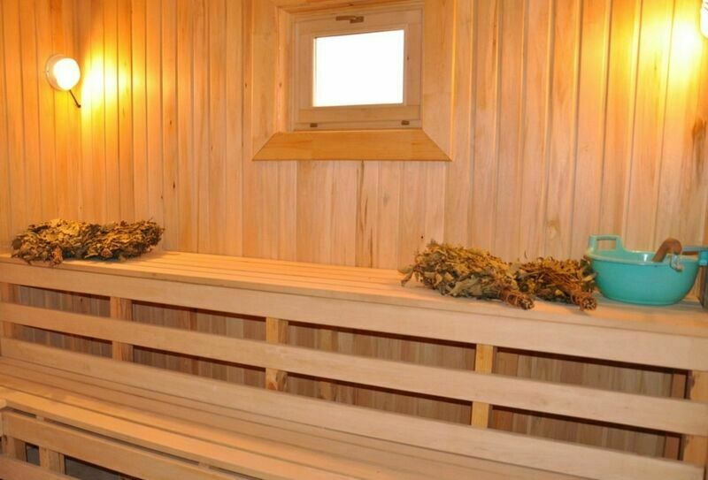 Большая парная и комната отдыха, бочка купель, душ, большой телевизор со спутниковым телевидением. Вместительность до 10 человек.