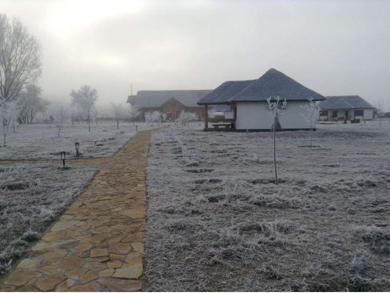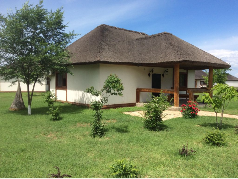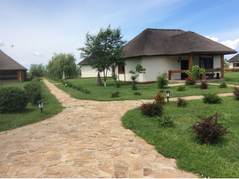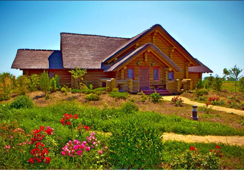 На базе 4 таких коттеджа. Комфортабельный, оригинальный и экологичный коттедж с камышовой крышей класса «Люкс». Состоит: веранда, холл-прихожая, гостиная, кухня, две спальни, сауна, ванная комната.
