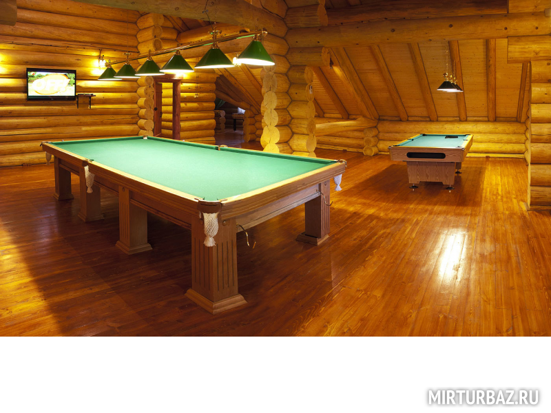 Бильярдный зал с русскими 12-ти и 10-ти футовыми столами и столом для игры в американский пул.