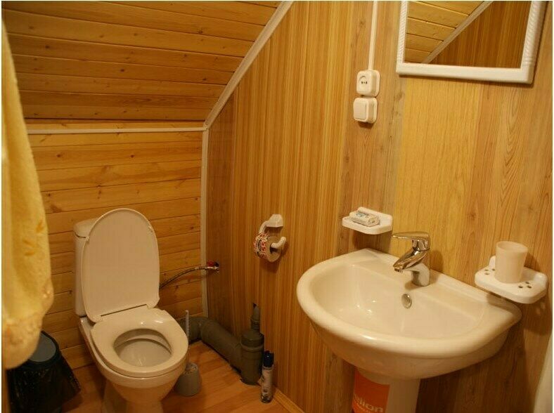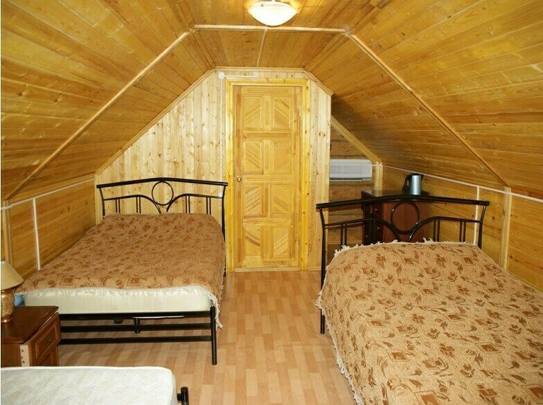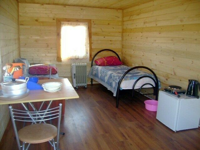Деревянный, комфортабельный домик на 2-х человек (жилая площадь - 16 кв.м). Находится на берегу реки в 200 метрах от ресторана.