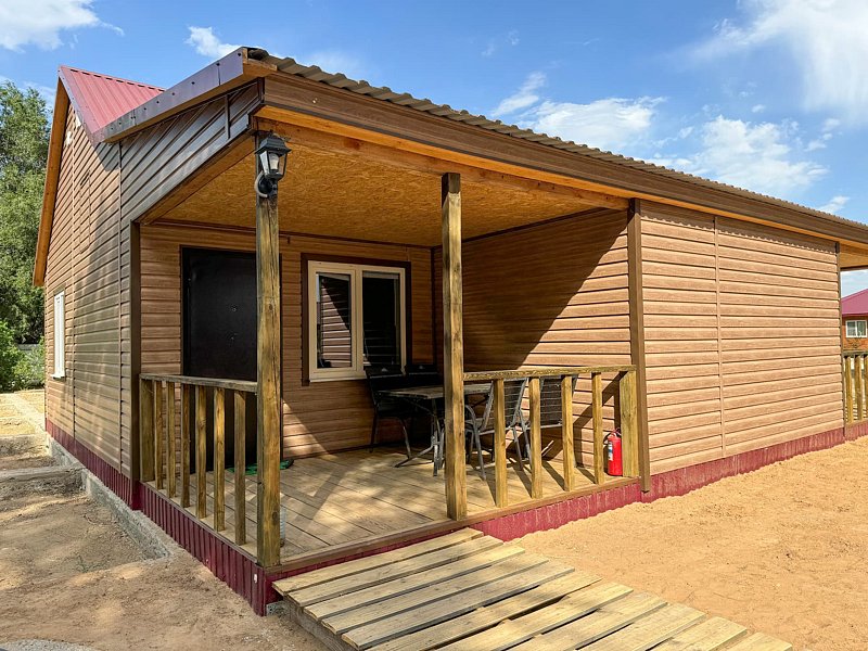 Домик Люкс состоит из двух 4-местных номеров. Оба номера имеют собственную террасу со столом и стульями и отдельные входы. В номерах свободное размещение для четырех человек, при необходимости можно организовать доп.место.