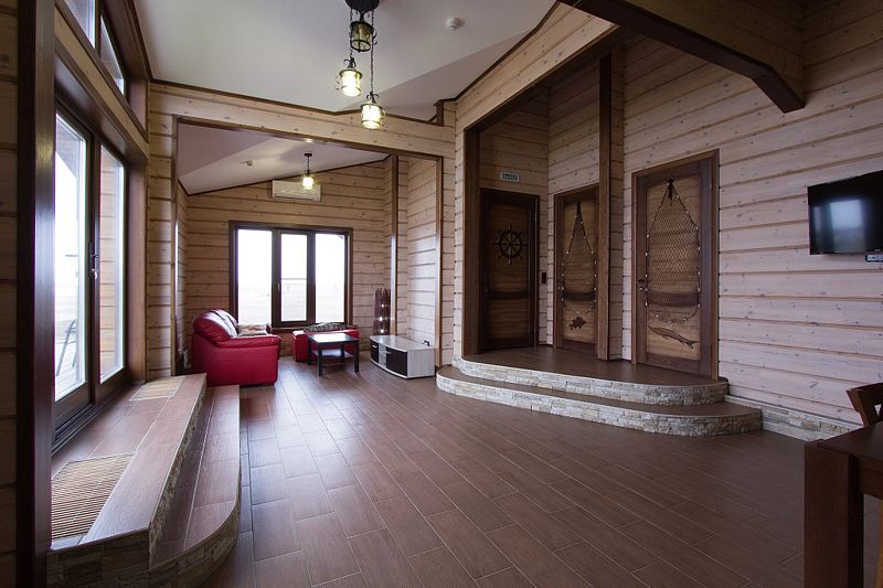 Здесь есть все для того, чтобы отдых был максимально удобным. Удобные и красивые апартаменты, отличный выбор вкуснейших блюд в ресторане, огромное разнообразие развлечений — что еще нужно для отличного отдыха? Здесь можно покататься на квадроциклах, съездить на увлекательную экскурсию или отправиться на конную прогулку. Кроме того, база предлагает множество услуг для отличной охоты и рыбалки — аренда катеров и снастей, обработка трофеев и многое другое.