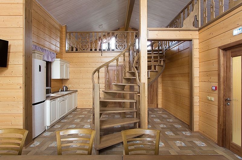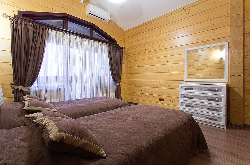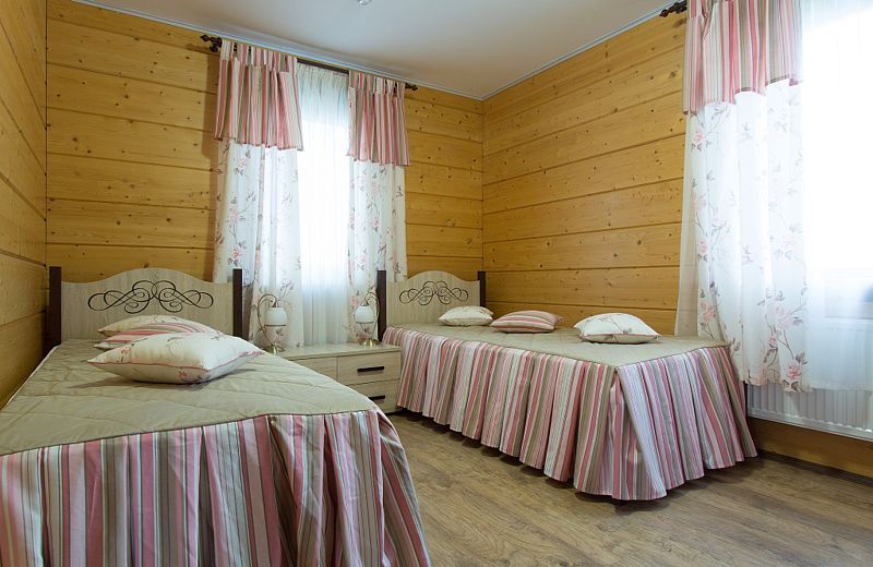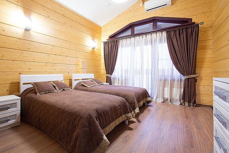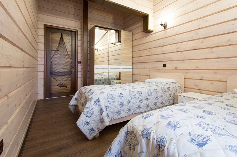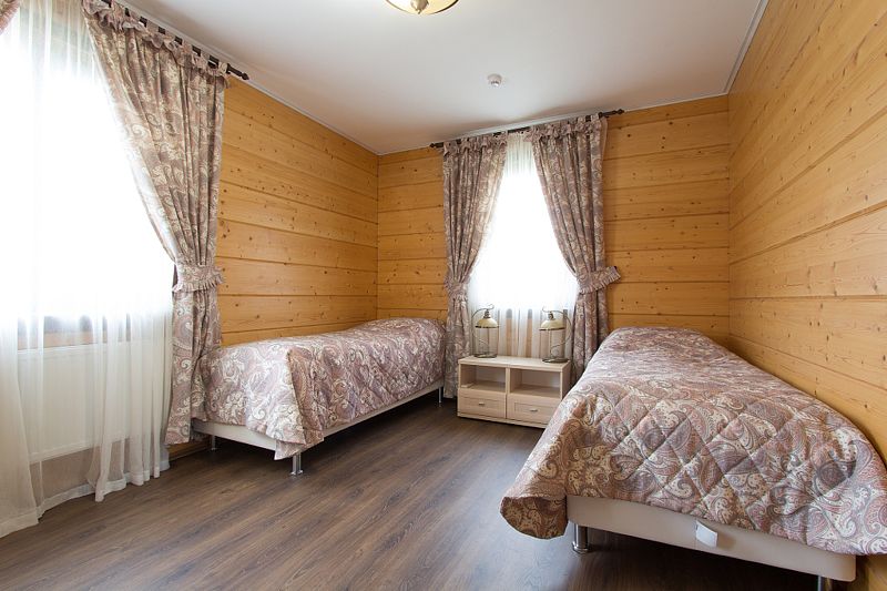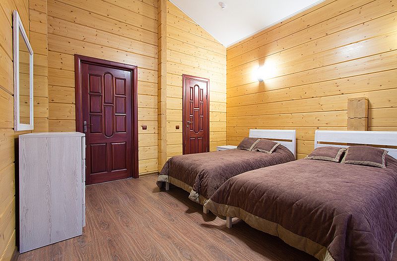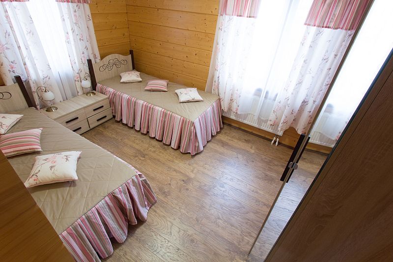 Двухэтажный коттедж состоит из 2 номеров на 4 человека каждый (+ 2 дополнительных места).