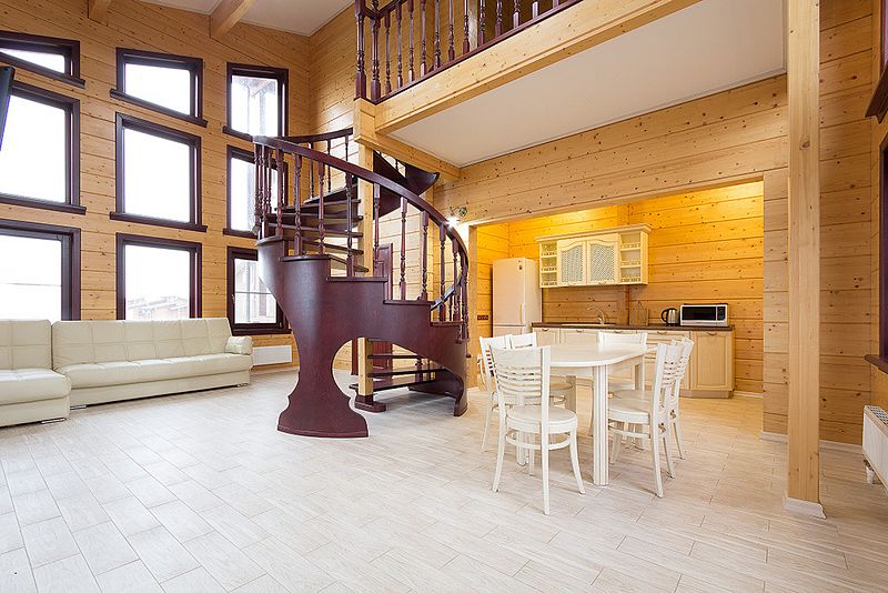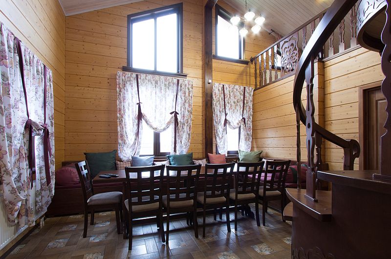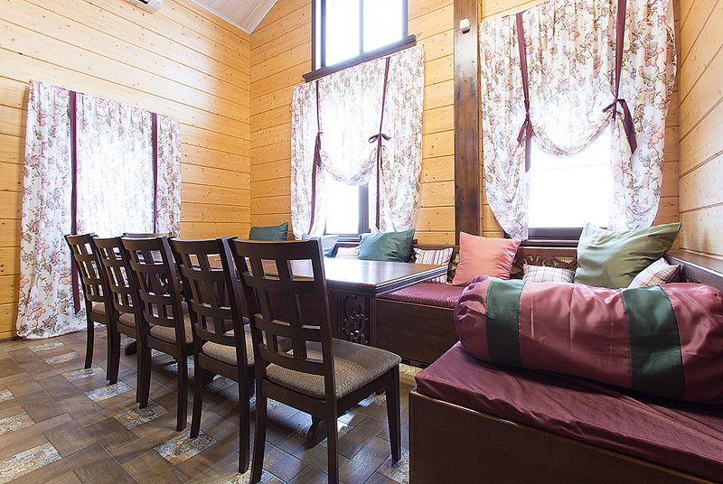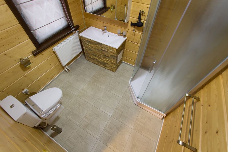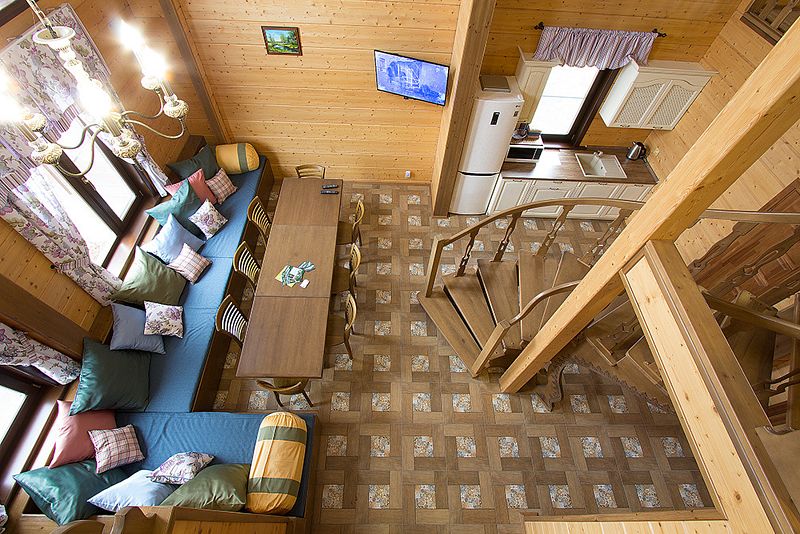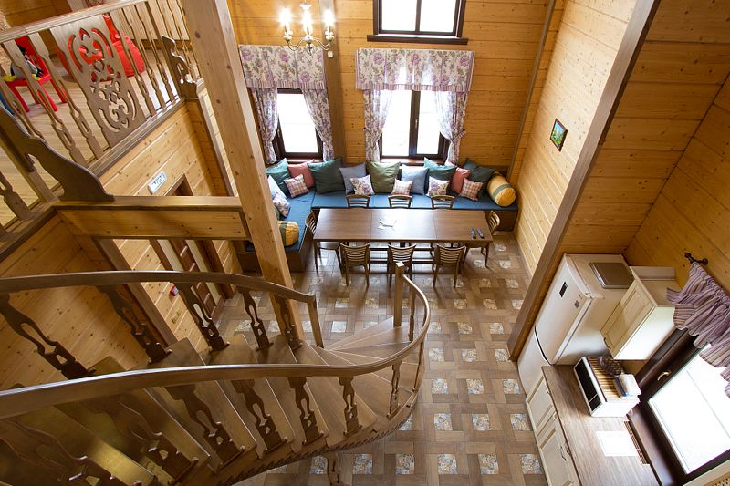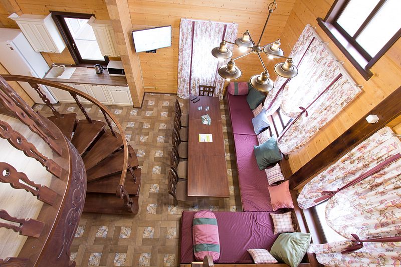 Двухэтажный коттедж состоит из 2 номеров на 4 человека каждый (+ 2 дополнительных места).