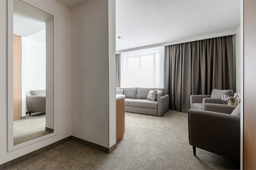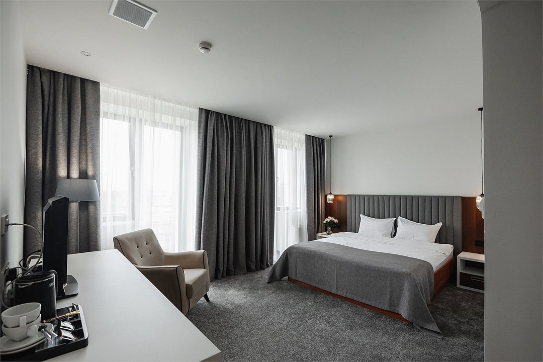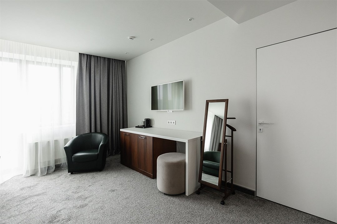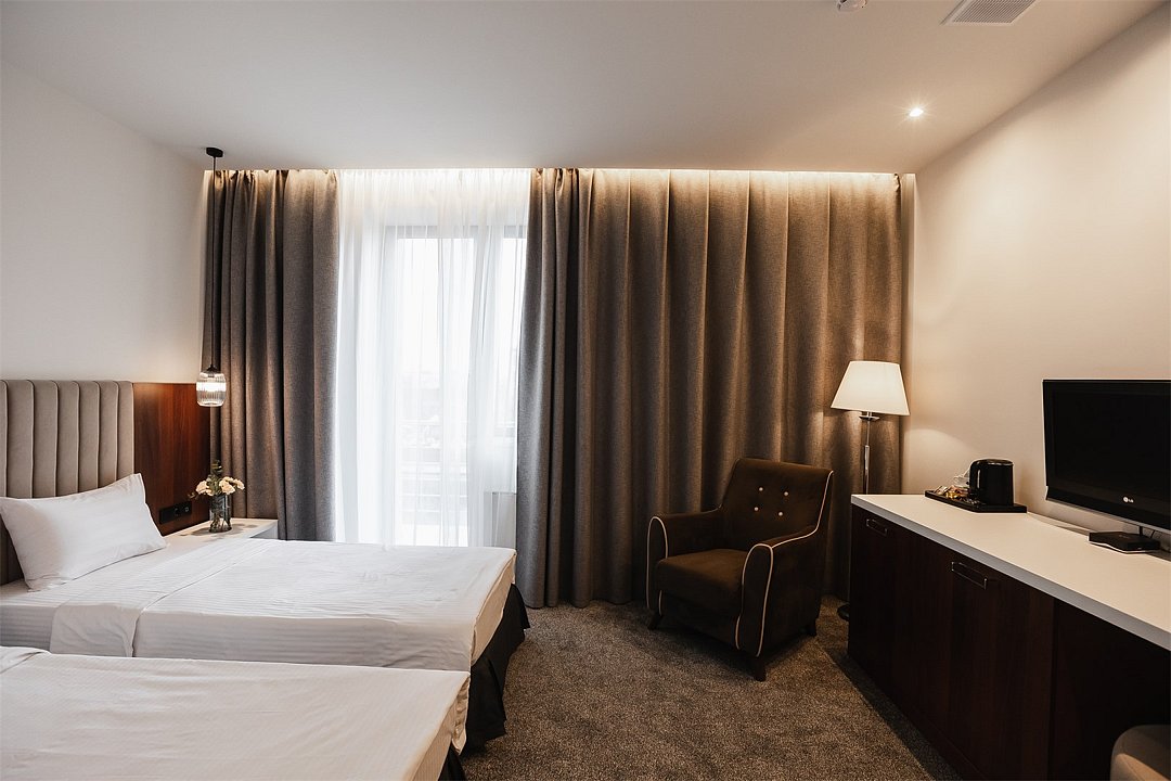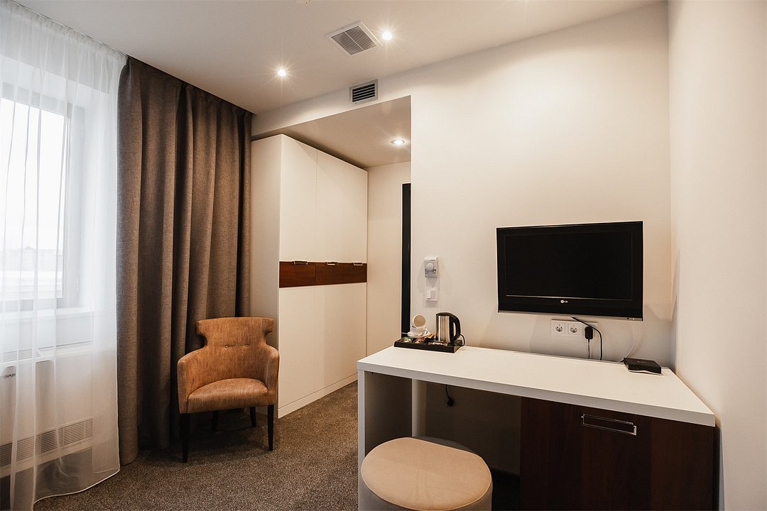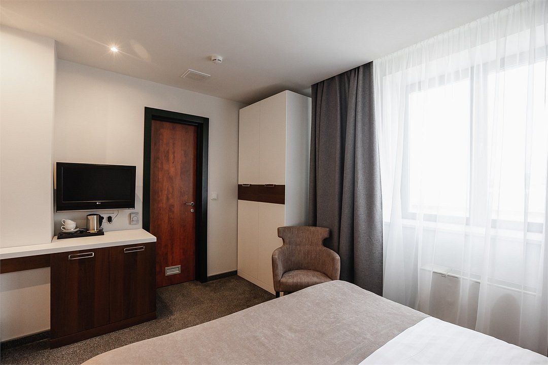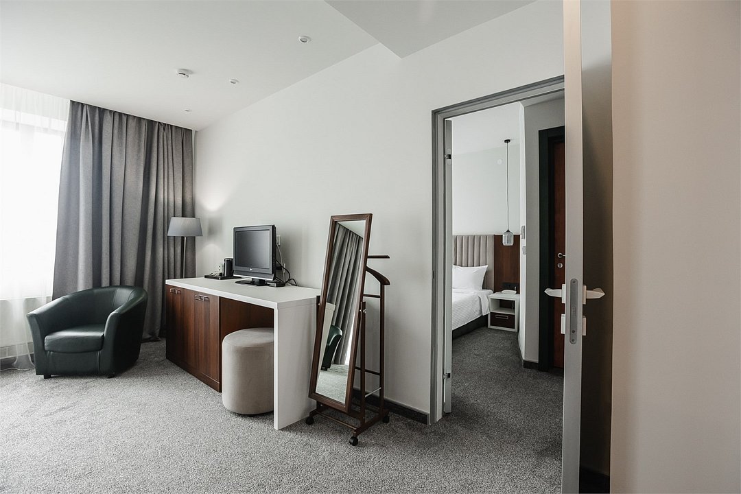 Путешествие с паройПока на 5 звезд не тянетДо 5 звёзд не дотягивает. Приехали в отель, никто не встретил, оформление быстрое. Вещи поднимали сами в номер. Номер достаточно большой, по закрытых окнах тихо. Постель хорошая, вода, чайник, минибар отсутствует, только холодильник. Сейф был закрыт , предыдущими постояльцами, но мы его и не просили открыть. Бери и уноси. Халаты , тапочки, хороший , полный косметический набор. Хорошая уборка, да и весь персонал отзывчивый и дружелюбный.завтрак в целом неплохой , но в пчтизвездочниках всегда есть красная рыба и шампанское на завтрак, хотя бы в выходные. Что не понравилось, ремонт проводился на скорую руку, кое где уже плитках отваливалась , как и ограничители дверей. Про сейф я уже говорил , одна балконная дверь просто была завернула шурупом. , телевизор практически не работал. Что еще, мы останавливались в входные и отель превращался в филиал дворца бракосочетания, который находится недалеко. Свадьбы особо не досажали , тем более в 23.00 все разбегались. А вот проведение флаер шоу, могло принести неприятности как гостям свадьбы, так как не соблюдались расстояния до выступающих, так и самому отелю с гостями, особо серьезных средств пожаротушения я не заметил, тем более взвешенные частицы от некоторых веществ фаре шоу долетали до 6 этажа и как дождик стучали в окно, да и запах исходил от этого шоу не очень приятный.